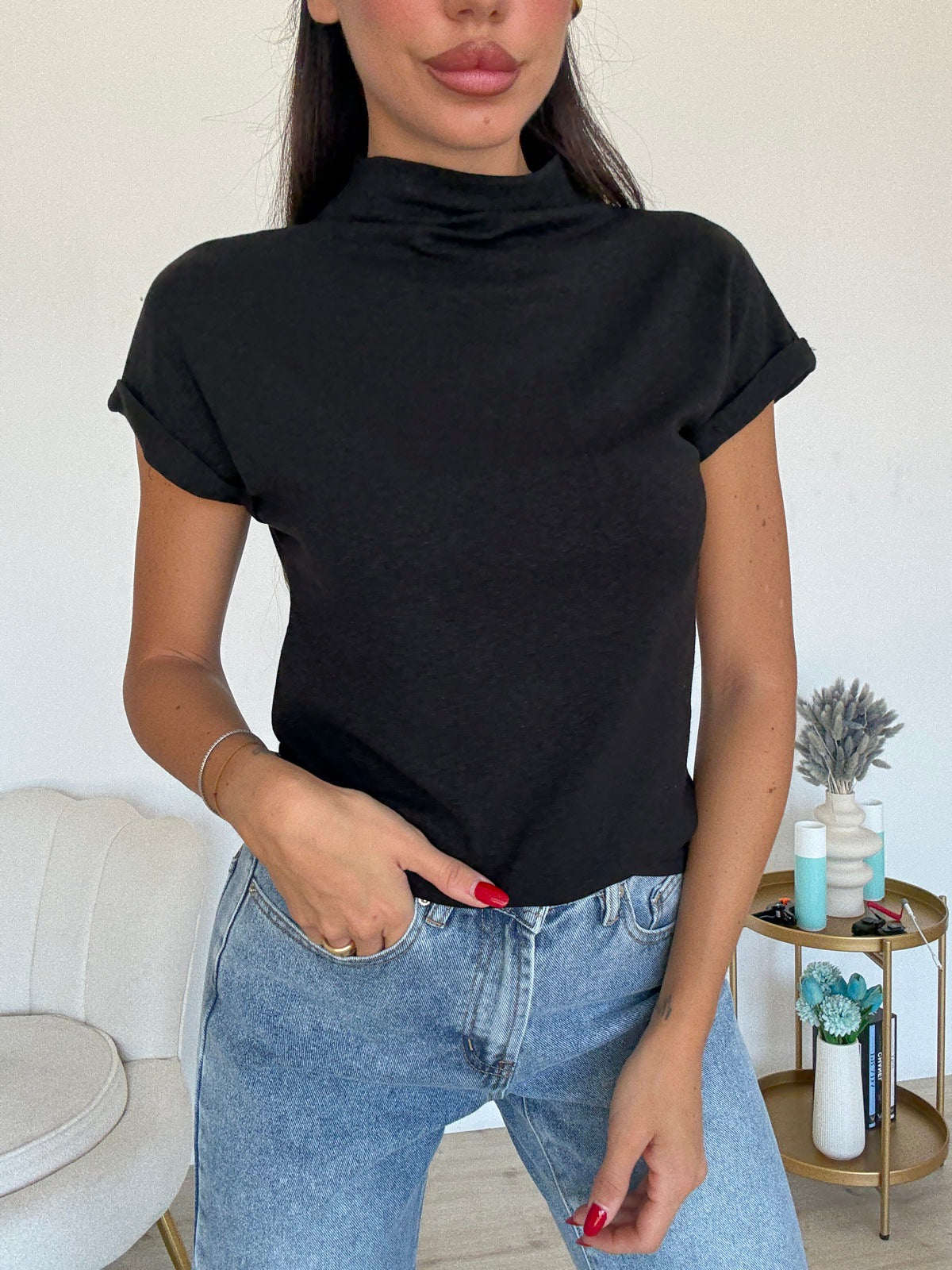 A64786-MAGLIA RISVOLTO NERA – Marlena s.r.l.