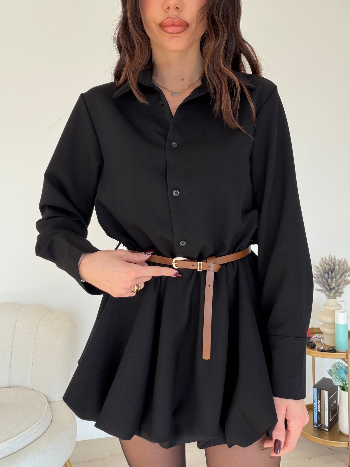 Mini abito in stile chemesier , bottoncini centrali , gonna a palloncino con elastico sul fondo, cintura in vita regolabile e removibile