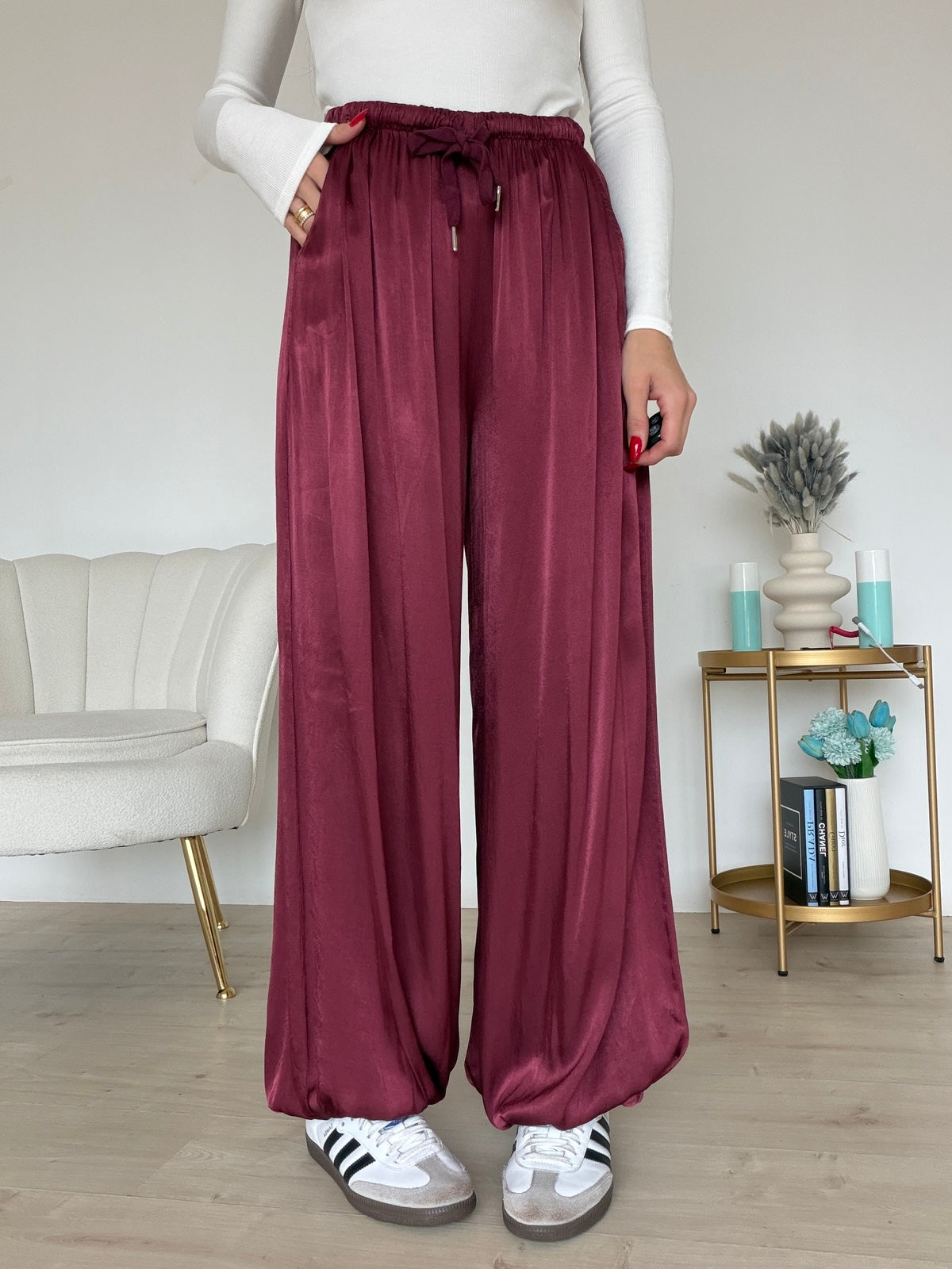 PANTALONE BALLON SATIN BORDEAUX