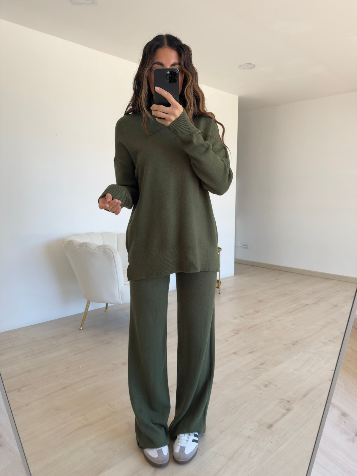 Coordinato edimburgo : Pull mezzo collo con spacchetti laterali + pantalone palazzo vita alta con elastico e coulisse in vita regolabile