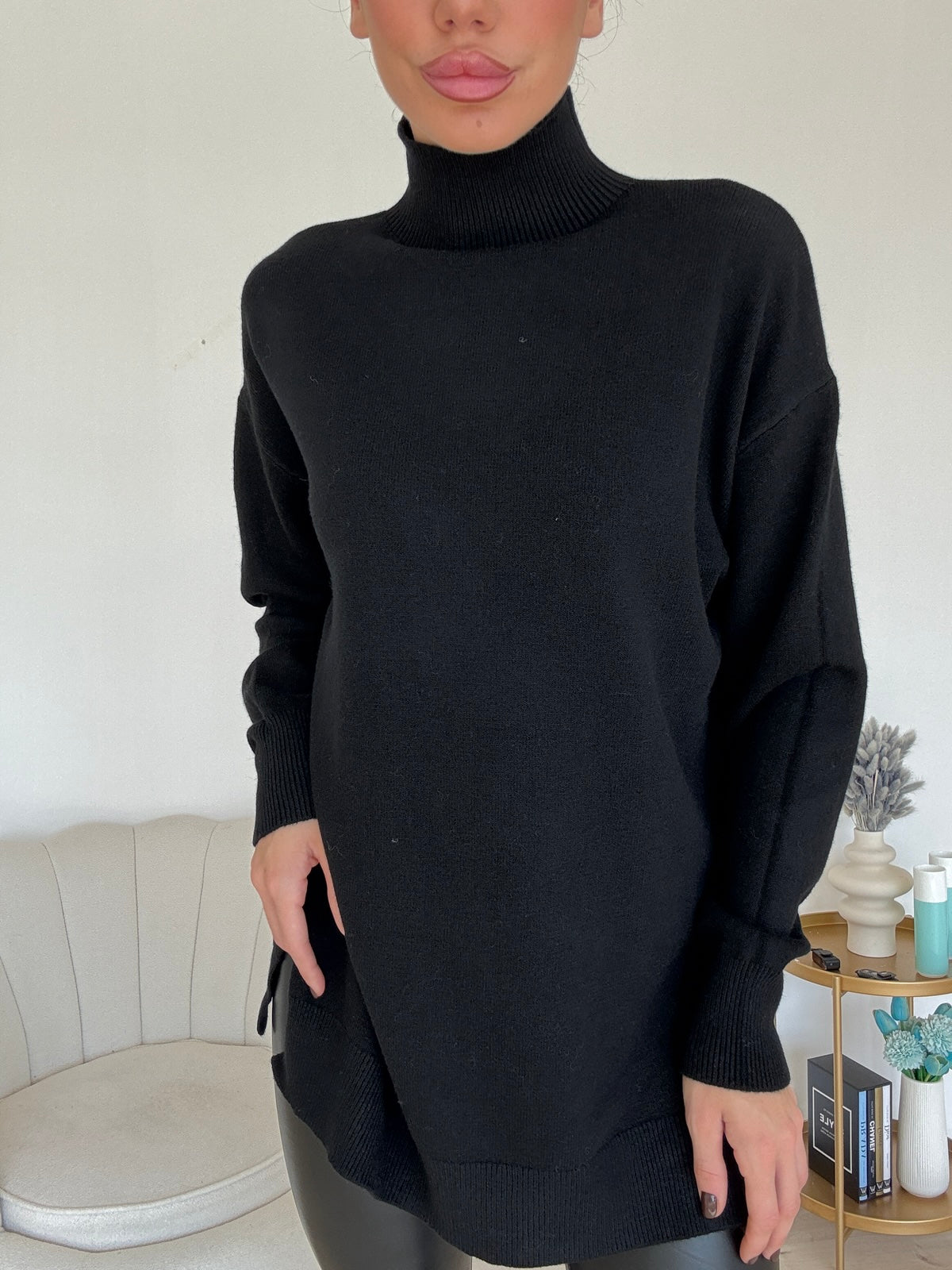 Maxi pull oversize mezzo collo , manica a sbuffo, spacchetti sul fondo
